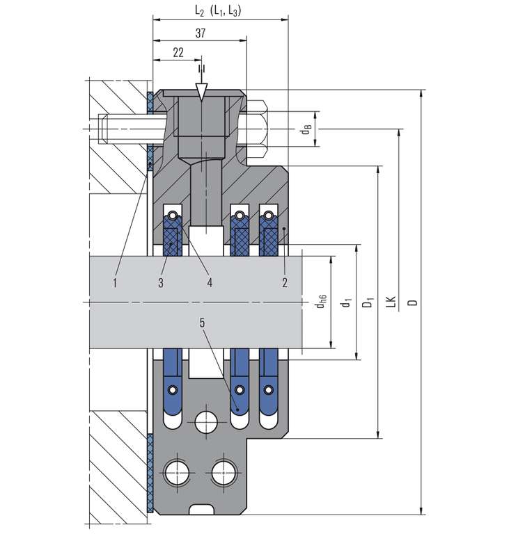 Radial play: ± 2.5 … 5.0 mm (± 0.1" … 0.2")