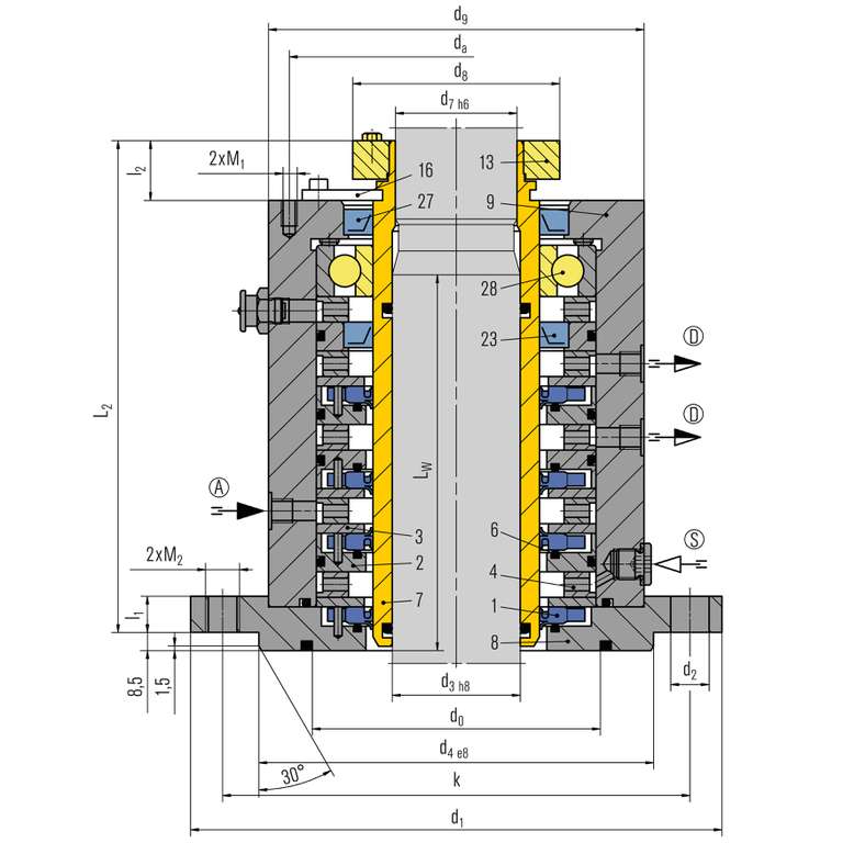 The SeccoLipR®481L is suitable for top and side drive and is only available with bearings. Flushing can be implemented using a special solution.