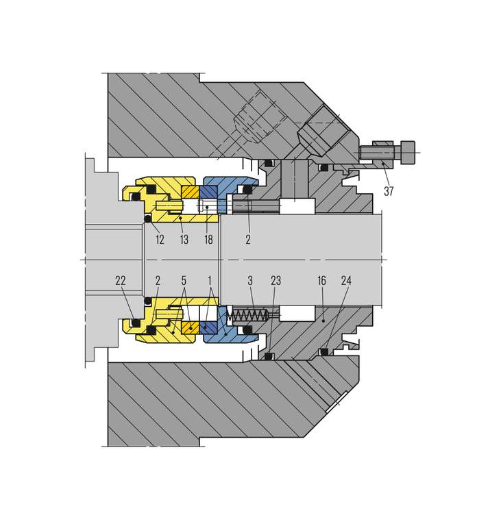 Single seals for API Plan 11 with throttle acc. Sulzer design request, adapted for Sulzer A pump series.